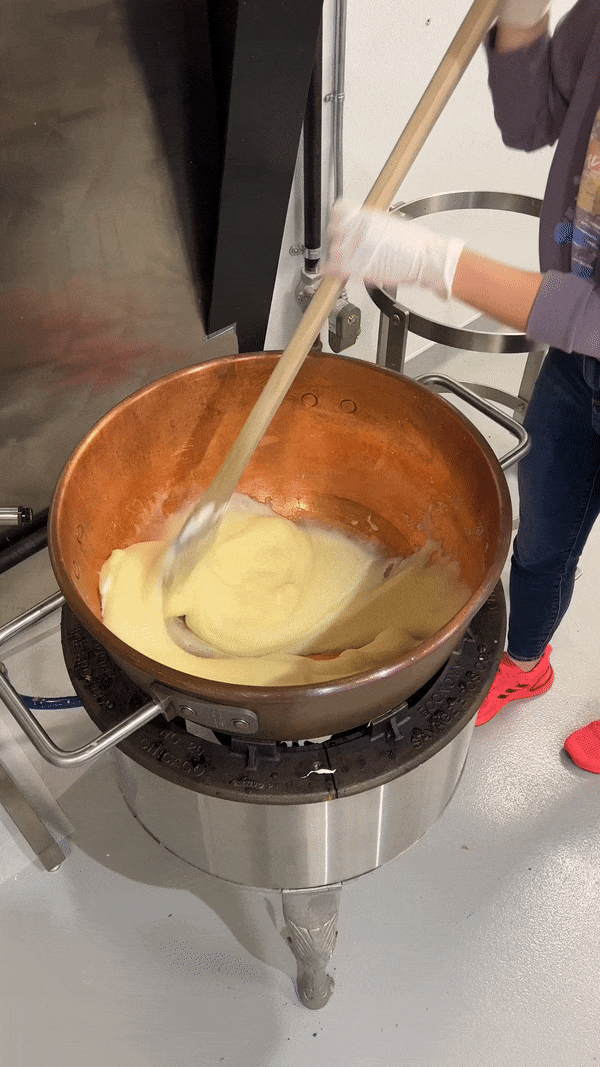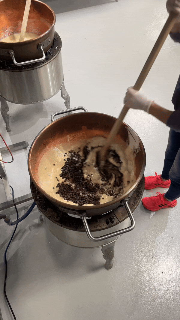 Mix base ingredients in copper kettles.